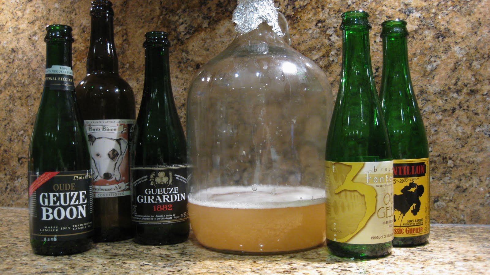 29 July 2011 - Made .5 l starter wort with some yeast nutrient to dump dregs into (Jolly Pumpkin Bam Biere, Cantillon Gueuze, Drie Fonteinen Oude Geuze, Girardin Gueuze 1882, Boon Oude Gueuze).