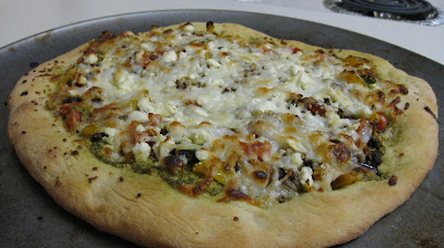 Just a quick picture of my new favorite, a vegetable pizza that I lifted from the NXNW menu. I've noticed that I get really terrible heartburn from all of the tomato sauce on Chicago style pizza, so this thin crust pizza with pesto instead of traditional sauce is right up my alley. I used red and yellow bell peppers, mushrooms, onions, zucchini, eggplant, garlic, and feta and mozzarella cheese. I've made it two nights in a row. I'm seriously considering a third.